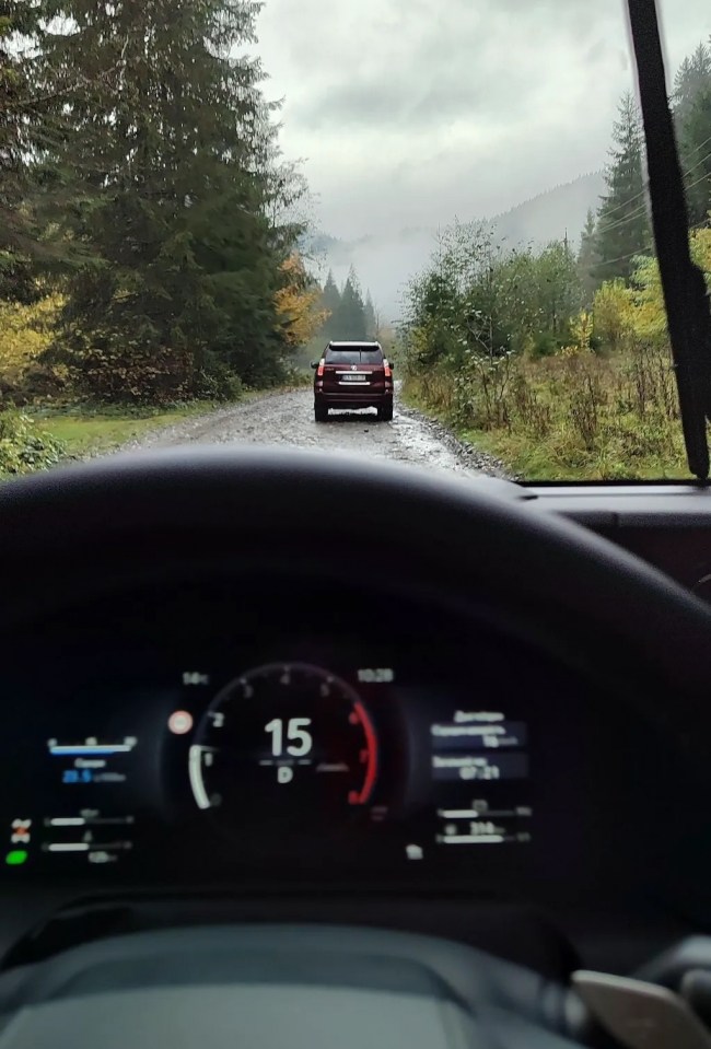 І ось воно бездоріжжя. Я обрав для поїздки на Драгобрат версію Luxury+. Побачимо як вона впорається на своїх гламурних 22-дюймових низькопрофільних колесах. Перед нами в колоні йшов попередній GX. І знаєте що? Там де минулий GX майже шкрябав днищем новий проїжджає легко. Навіть на низьких колесах нова машина легко просувається по камянистій дорозі. Не раз і не два я хвилювався, що шини поріжуться об гостре каміння, або великий камінь вдарить по днищу чи подере диски. Та новачок вперто і легко пре в гору.