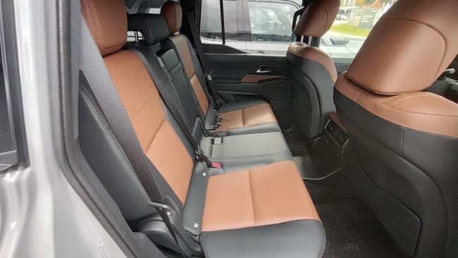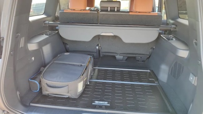 Задній ряд сидінь просторий. Адже колісна база новинки така сама як в флагманського LX. Але по центру третьому пасажиру всеж заважає вигин боксу-холодильника, розташованому між передніми сидіннями.